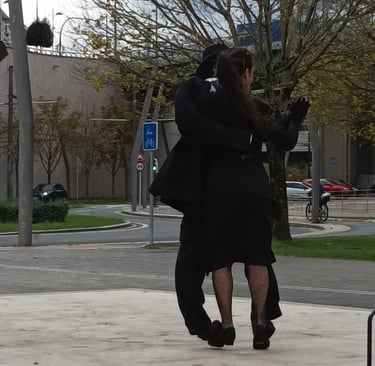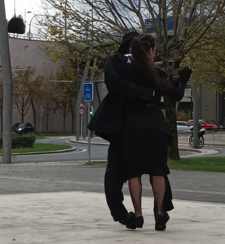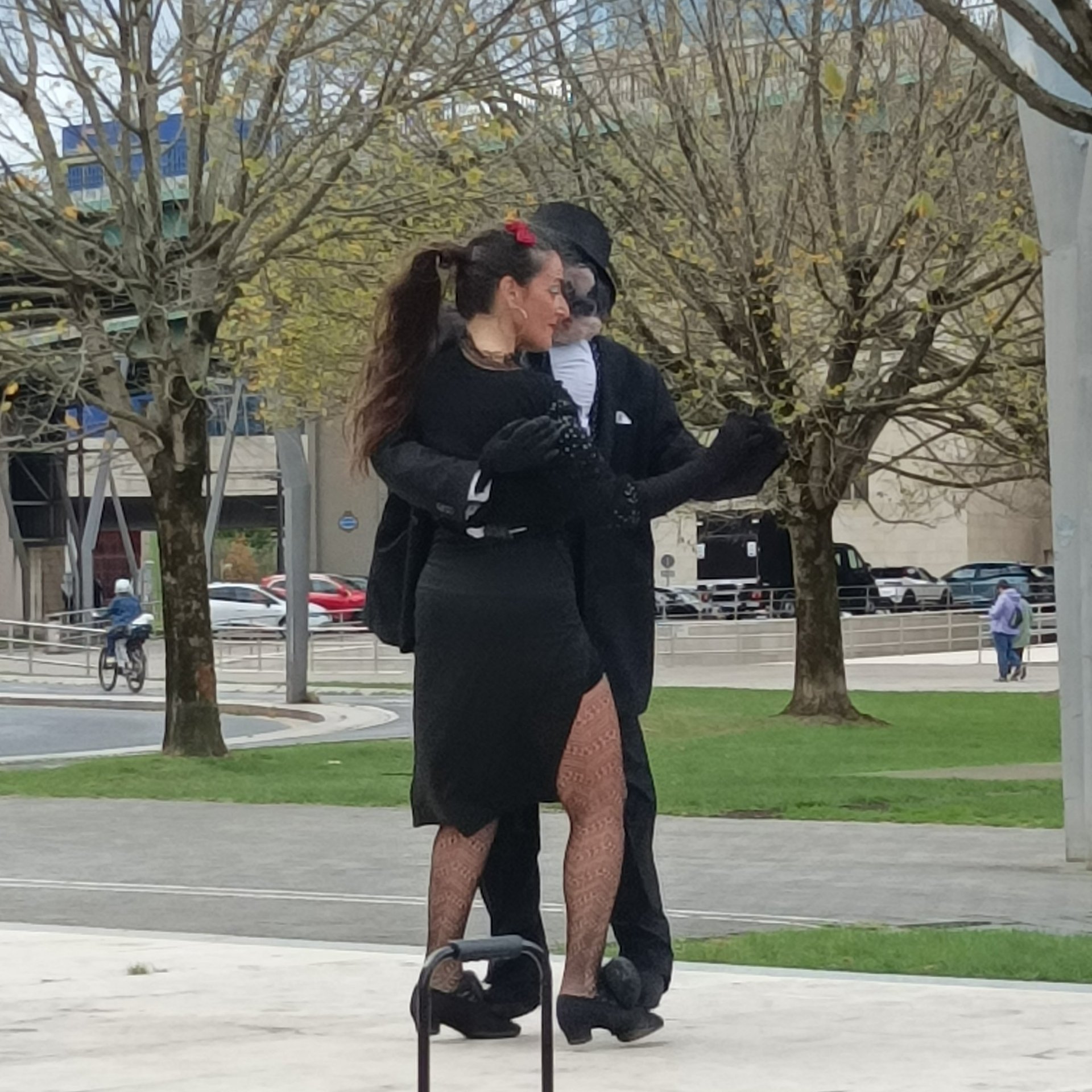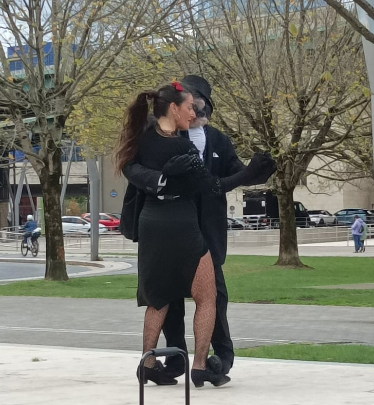 As if to emphasise this sense of fun, we passed a small stage on the side of the walkway, which invites passers-by to perform. The music of the fandango was playing from a small sound box, while on the stage a couple was dancing. The lady was elegantly dressed as she strutted her stuff. She wore a black dress, fish net stockings , and a red rose adorned her jet black hair. Her partner wore a top hat and dark suit. As they threw themselves enthusiastically around the stage , I realised that all was not exactly as it first seemed. Look a little closer at these images, and you will see what I mean.