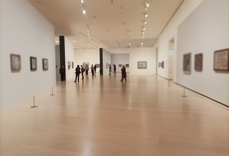 Museums exist to display art and artefacts, so of course, we also had to go inside. However, the museum concentrates on displaying modern art from the mid-twentieth century , which is not so much to my taste. How would I find it? We stepped inside, and immediately I felt that the the inner building was as much part of the experience. It consists of three walkways which skirt the central atrium. There is so much light and space, it takes your breath away.