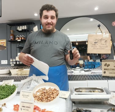 Even though the fish stalls had been closed that day, we could see what an exciting market this is. Here are a few of the stalls we saw, selling meat products , fresh pasta and panettone from Italy , an enormous range of cheeses, fruit and veg. and more. I can't wait to return soon to see what fresh fish they offer.