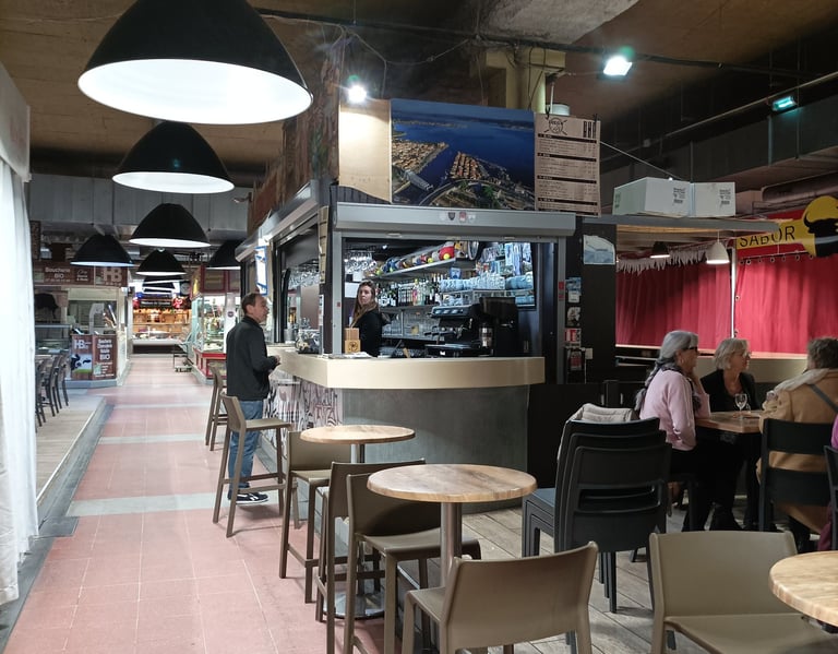We have visited Sète many times over the years. During one summer , we moored our old boat in the port, and watched from there the activity of boats, both big and small, that was going on around us. We have walked along the beaches, and seen the view from the top of Mont St Clair, and we have cycled along the canal into the busy town centre. Now that we have a flat here, bit by bit we are slowly beginning to put these different pieces of the jigsaw together, to see it as a whole. Last Monday we decided to visit les Halles, Sète's famous indoor market, so we crossed the Canal Royale, and headed for the old centre of town. We weren't alone, for we had heard many American voices around us. When we saw a group outside Les Halles being led by a guide with a large sign , we realised that a cruise ship must have docked in port. His sign read Viking Vela, which I assumed was the name of their ship.